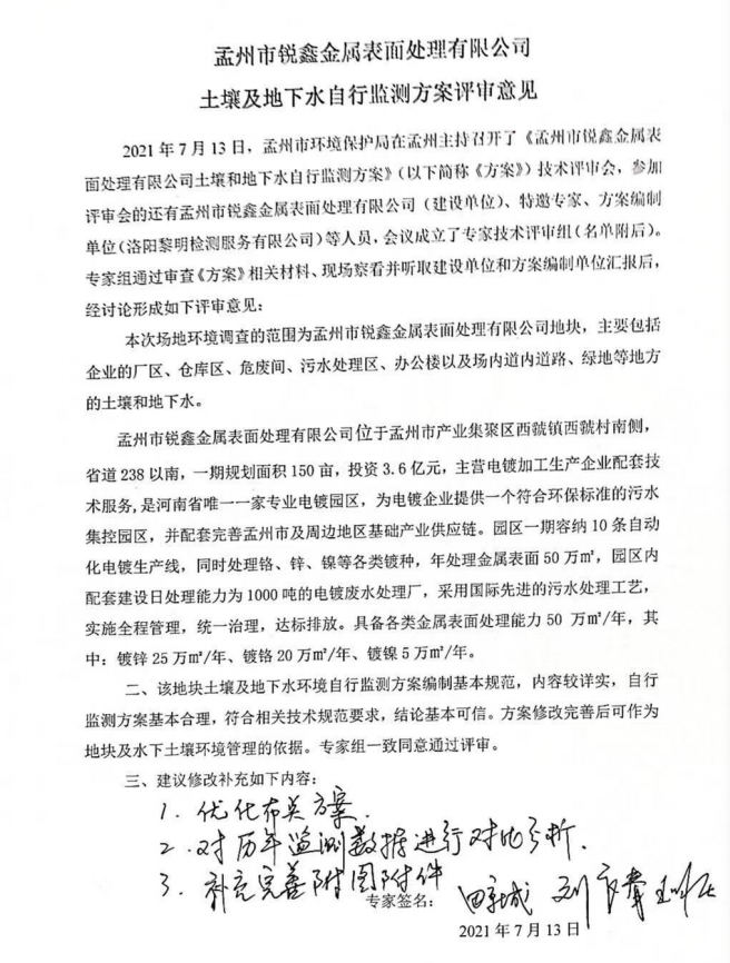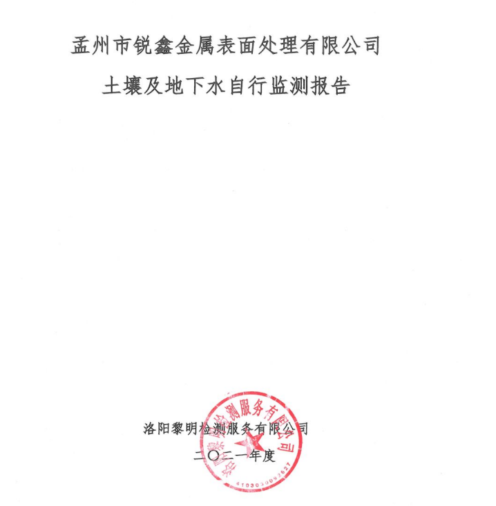 孟州市銳鑫金屬表面處理有限公司2021年度土壤和地下水自行監(jiān)測報告公示